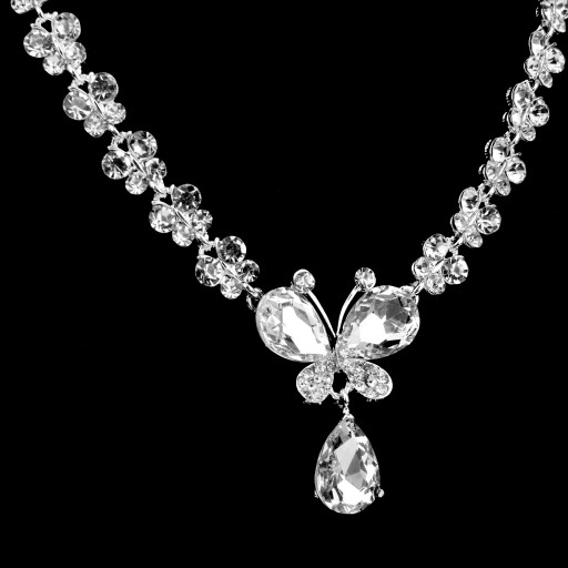 wkv-КРИСТАЛЛ БАБОЧКА И КУЛОН-КАПЛЯ Свадебное ювелирное ожерелье