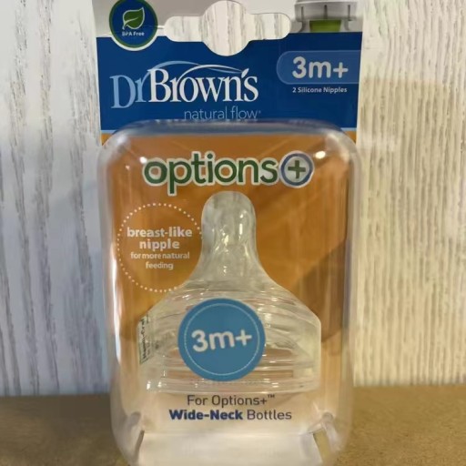 Smoczek wyprofilowany został w kształt anatomiczny piersi, dzięki czemu zapewnia prawidłowe przyssanie i bardziej naturalne karmienie butelką. Smoczek został wykonany z silikonu medycznego, jest wolny od BPA oraz posiada system antykolkowy, który ogranicza kolkę, zmniejsza odbijanie i wzdęcia, pozwala zachować składniki odżywcze i wspomaga trawienie, zapewniając spokojny sen. Zaprojektowane, aby pasować wyłącznie do butelek z szeroką szyjką Dr Brown's® Options+™. Można myć w zmywarce (górny stojak) i sterylizować