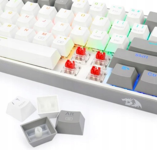 - Czerwone przełączniki z możliwością wymiany podczas pracy: Najcichsze przełączniki mechaniczne, liniowe i miękkie naciśnięcia przycisków ułatwiają zarejestrowanie każdego kliknięcia. Możliwość wymiany na gorąco z innymi przełącznikami Redragon. Przełączniki są zaprojektowane tak, aby wytrzymać 50 milionów naciśnięć przycisków.