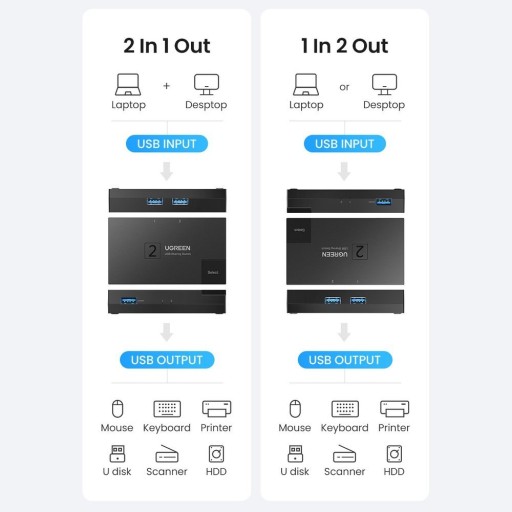 Gadżet pozwala, żeby dwa komputery mogły korzystać z tych samych urządzeń USB bez konieczności ciągłego przepisania ich pomiędzy nimi. Podłącz je raz do przełącznika i w razie potrzeby udostępnij je drugiemu komputerowi. Ugreen CM618 zajmuje mało miejsca i zmieścisz go nawet na małym biurku. Jest idealny w podróży, co powoduje, że zmieści się w torbie laptopa, plecaku. Przełącznik działa w standardzie USB 3.2 Gen 1. Dzięki temu osiąga prędkość przesyłania danych do 5 Gb/s.