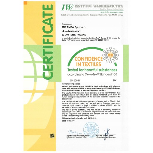 ✅ Materiał: Tkanina certyfikowana Oeko Tex