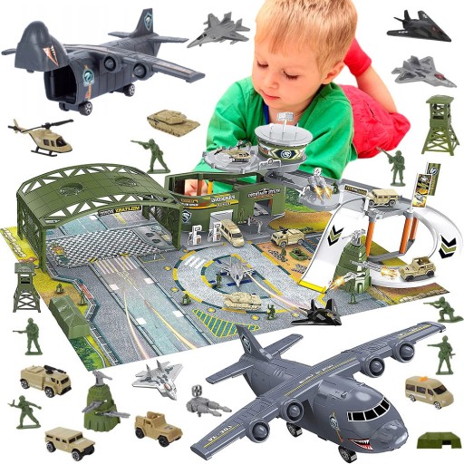 Zestaw Baza Wojskowa - Armia, Lotnisko, Samolot, Czołg, Żołnierzyki, Tor, Mata XXL Przedstawiamy imponujący Zestaw Baza Wojskowa, który przenosi dzieci w fascynujący świat militarnych przygód i strategicznych misji.