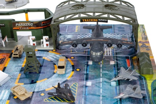 - Kompletna Baza Wojskowa: Zestaw obejmuje bazę wojskową, lotnisko, samolot, czołg, żołnierzyki oraz tor z elementami krajobrazu. To wszystko w jednym zestawie, tworząc pełen wrażeń plac zabaw.