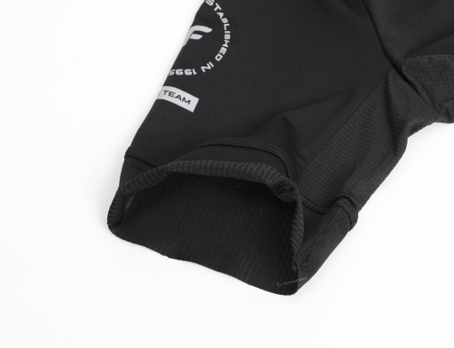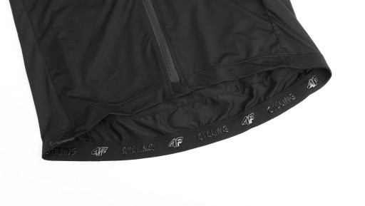 - dół od wewnętrznej strony został wykończony antypoślizgową taśmą z silikonowymi elementami, co zapobiega podwijaniu się koszulki podczas jazdy.
