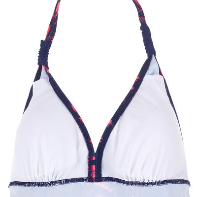 Zespół surferek na różnych poziomach umiejętności stworzył ten damski kostium kąpielowy dla początkujących, surfujących w przybrzeżnej fali. Damski, jednoczęściowy kostium kąpielowy wiązany na szyi. Bardzo kobiecy z odsłoniętymi plecami i ramionami.