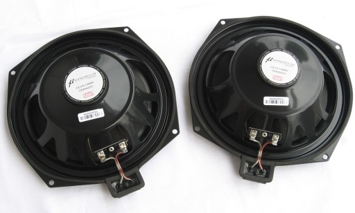 Dobrej jakości 2 głośniki niskotonowe (woofery) przeznaczone do łatwej modyfikacji i poprawy brzmienia oryginalnych systemów audio (OEM) w samochodach marki BMW. Głośniki posiadają kosze tłoczone ze stali, silne neodymowe magnesy, sztywne i lekkie celulozowe membrany zapewniające dobrą jakość brzmienia niskich tonów i są przystosowane do montażu w fabrycznych miejscach pod fotelami.
