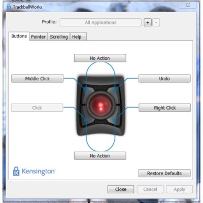 To oprogramowanie do bezpłatnego pobrania umożliwia spersonalizowanie trackballa i przypisanie każdemu z 4 przycisków różnych funkcji, a także ustawienie szybkości kursora i przewijania.