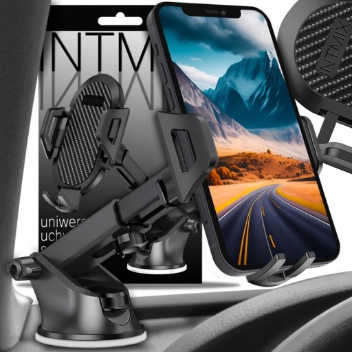 - Oferowany uchwyt samochodowy charakteryzuje się elastycznym mocowaniem, które umożliwiają jego montaż zarówno na przedniej szybie, jak i na desce rozdzielczej