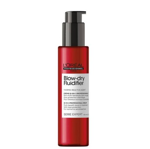 Lekki krem bez spłukiwania Blow-Dry Fluidifier dla lepszego utrwalenia, przeciwdziałania puszeniu i ochrony przed wysoką temperaturą podczas suszenia włosów. Zapewnia długotrwałe rezultaty po suszeniu włosów do 4 dni. Włosy są chronione przed wysoką temperaturą do 230°C.