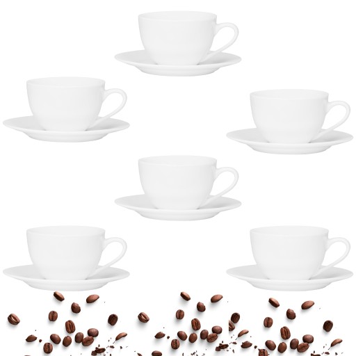 ZESTAW BIAŁYCH FILIŻANEK 6SZT PORCELANOWYCH 240ML