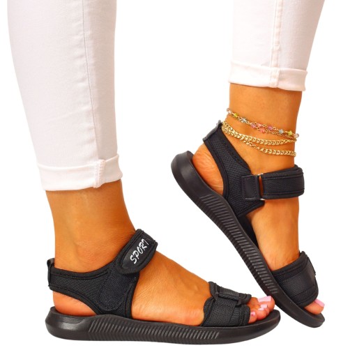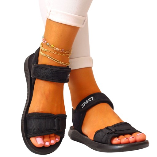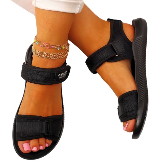 Damskie sandały na grubej podeszwie zapinane na rzep dopasowującej się do stopy. Komfortowa, profilowana wkładka sprawia, że idealnie nadają się do codziennego użytkowania. Prosty fason w czarnym kolorze dopasuje się do wielu stylizacji.❗