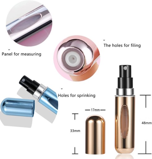 - Rozmiar to tylko 80 x 16.5 x 16.5 MM, a objętość to 5 ml. Lekki i wytrzymały materiał aluminiowy sprawia, że idealnie nadaje się do noszenia w torebce lub kieszeni