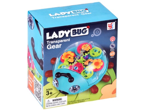 - wewnątrz zamontowane kolorowe zębatki z małymi tańczącymi biedroneczkami