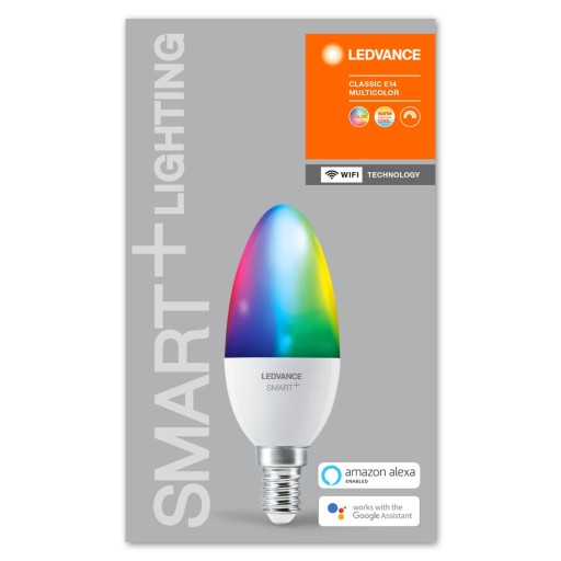 Sterowanie za pomocą aplikacji LEDVANCE SMART+ WiFi (z co najmniej Androidem 4.4 lub iOS 9.0). Możliwość sterowania przez Asystenta Google i Amazon Alexa. Regulacja temperatury barwowej światła: 2700…6500 K oraz sterowanie kolorami RGB. Żarówka posiada funkcję ściemniania. Obsługiwana protokołem sieciowym WiFi.