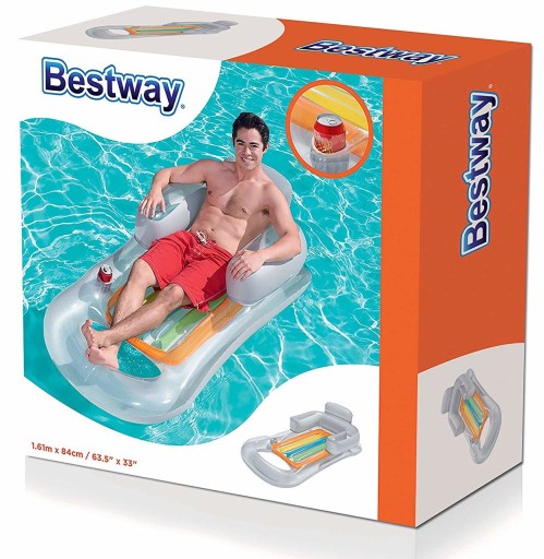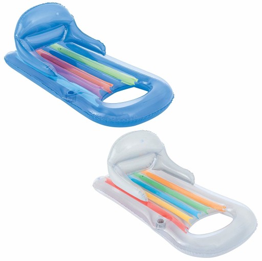 Materac dmuchany Bestway Designer o wymiarach 161 x 84 cm. Najważniejsze zalety: • dwie komory powietrzne • częściowo przezroczysta konstrukcja • wygodne oparcie pod plecy i ramiona • przegroda na kubek • łatka naprawcza • produkt dostępny w dwóch wariantach kolorystycznych