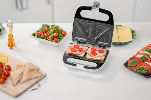 - Krótki opis marketingowy: Opiekacz do kanapek z płytkami z kamienną powłoką