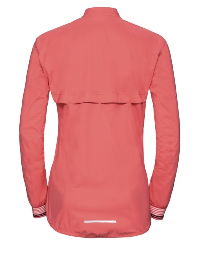 Kurtka posiada przedłużone plecy oraz liczne elementy poprawiające widoczność rowerzysty: odblaskowe logo Odlo oraz taśmę wokół bioder.