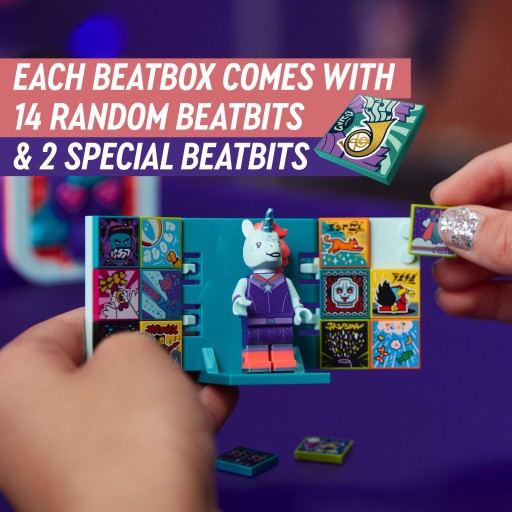 Pozwól dzieciom uwielbiającym taniec i występy przenieść się do świata pełnego teledysków. Zestaw zawiera minifigurkę Unicorn DJ, akcesorium w postaci płyty winylowej, 14 losowych BeatBitów i dwa specjalne BeatBity. Pobierz darmową aplikację, zeskanuj figurkę artysty muzycznego i zobacz sceniczny wizerunek Unicorn DJ. Możesz też zeskanować BeatBity, aby odblokować specjalne efekty, wyzwania i nie tylko. Dzięki temu zestawowi dzieci mogą tworzyć własne hip-hopowe teledyski i udostępniać je innym twórcom w bezpiecznym środowisku.