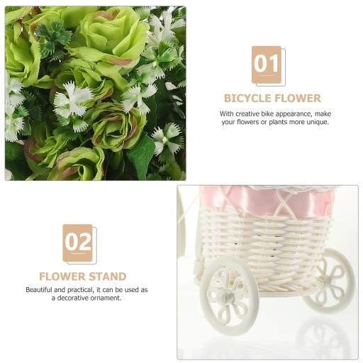 Jest to stojak na kwiaty o wykwintnym kształcie roweru. Wykonane z materiałów, trwałe. Rozmiar jest odpowiedni dla łatwego umieszczenia. Może być również używany jako ozdoba, aby dodać więcej naturalnego piękna do domu i biura.