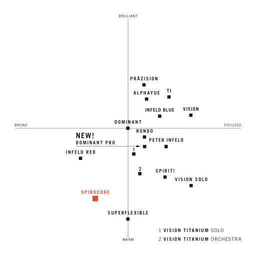 Thomastik w strunach Spirocore zastosował nowatorskie rozwiązanie rdzenia, dzięki czemu struny mają zwiększoną elastyczność, zmniejszoną sztywność oraz są niezwykle czułe na atak smyczka. Udało się to osiągną zastępując klasyczny, jednolilty rdzeń stalowy, wielożyłowym rdzeniem wykonanym ze spiralnie skręconych stalowych nitek.