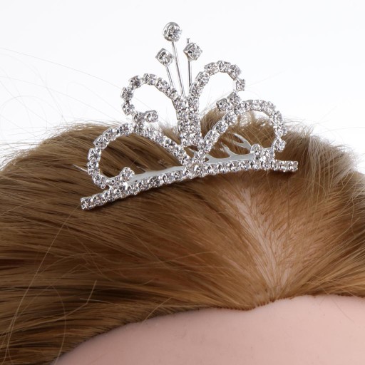 Delikatna księżniczka mini tiara, ozdobiona kryształową dekoracją rhinestone