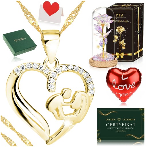 ➡️ ZŁOTY NASZYJNIK SERCE 925/585 + RÓŻA WIECZNA LED / DLA MAMY NA DZIEŃ MATKI