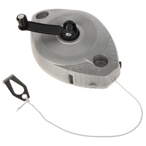 Wytrzymały sznurek traserski niezbędny przy pracach murarskich i remontowych wyposażony w pojemnik na kredę; Długość sznurka: 30 m ; Zastosowanie: Do użytku przy pracach murarskich, Prace elektryczne, takie jak wyznaczanie linii pod rurki, korytka czy linie lamp oświetleniowych ; Obudowa: Aluminium, Wodoodporna ;
