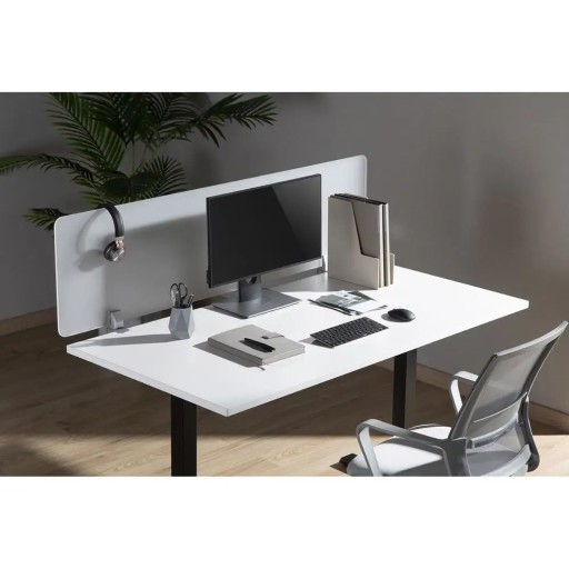 Ścianka działowa biurowa marki Fromm & Starck sprawdzi się w biurze, salonie kosmetycznym czy restauracji. Pozwala stworzyć osobistą, bezpieczną i higieniczną przestrzeń dla pracowników czy dla klientów. Ścianka działowa ma wymiar 1500 x 400 mm. Wykonana została z półprzezroczystego akrylu. Jest łatwa w montażu, mocowana do krawędzi stołu za pomocą zacisków. Materiał nie zawiera substancji toksycznych i może być bezpiecznie stosowany w różnych miejscach. Przegroda jest łatwa w czyszczeniu i dezynfekcji.