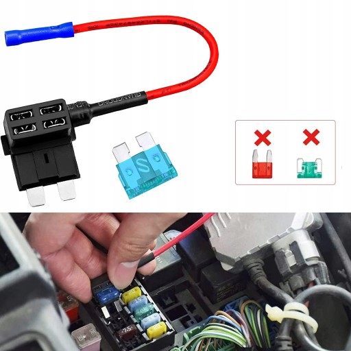 - Gniazdo mocowane w miejsce dotychczasowego bezpiecznika. Do gniazda wpinamy wyjęty bezpiecznik oraz nowy zabezpieczający dodatkowy obwód.
