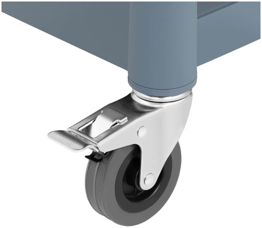 - - Wyposażony w 4 koła (skrętne 360°) z 2 hamulcami,