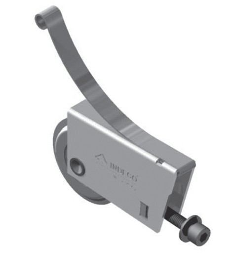 Korpus wykonany z wysokoudarowego tworzywa konstrukcyjnego. Część ruchoma pozwala na regulację w zakresie 0-15mm dzięki śrubie regulacyjnej, posiada sprężynujący element zabezpieczający przed wypadnięciem wózka z toru. Wózek posiada kółko z wytrzymałego tworzywa sztucznego otaczającego trwałe, stalowe, hermetyczne i smarowane łożysko kulkowe.