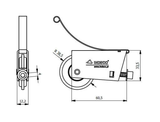 Wózek dolny, kółko, rolka do drzwi przesuwnych INDECO, system ramy aluminiowej - 4 szt.