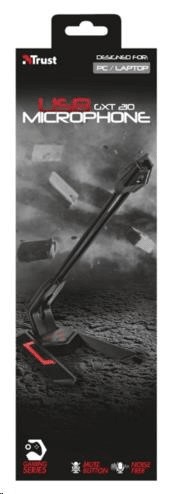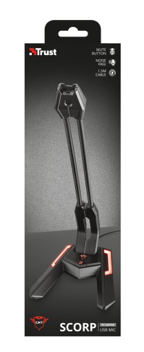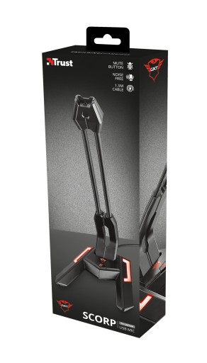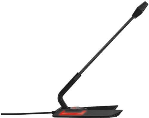 Mikrofon z podstawą. Posiada elastyczne i regulowane ramię, kabel o długości 1.5 m, przycisk wyciszania, przełącznik on-off, diodę LED.