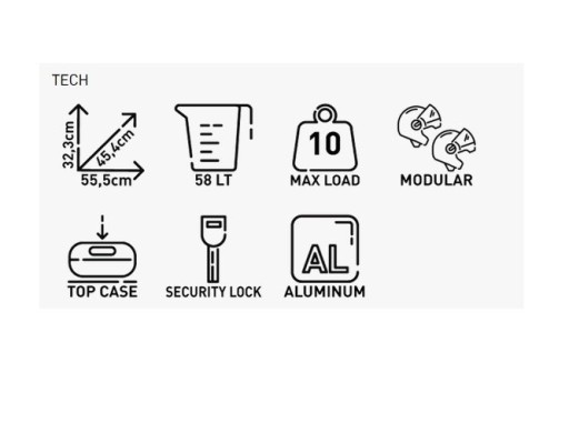 KAPPA TOP CASE 58L MONOKEY KFR580B K'FORCE ALUMINIUM BLACK LINE