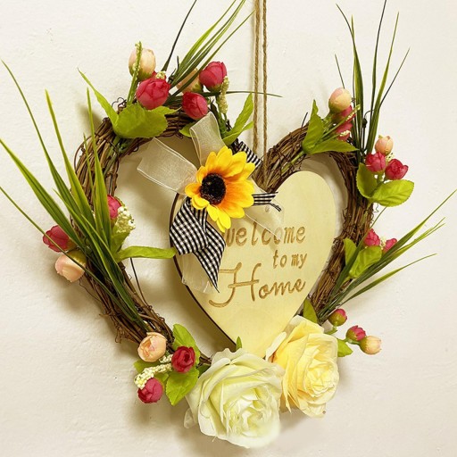 Sztuczny rattanowy wieniec w kształcie serca wykonany jest z drewna i rattanu, który nie jest łatwy do uszkodzenia, wykwintne wykonanie i trwałość.