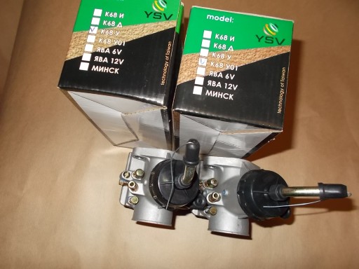 DO MOTOCYKLI ; M-72 , K-750 , MB650/750 , URAL , DNIEPR - NOWA FABRYCZNIE PARA GAŻNIKÓW K-68Y , KTÓRE PRACUJĄ BEZ ZASTRZEŻEŃ . PRODUKCJA TAJWAN . CENA DOTYCZY 2 SZTUK LEWA+PRAWA STRONA .
