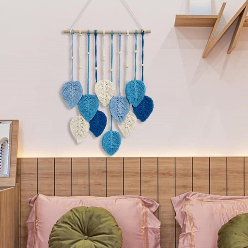 Wisząca ścienna makrama w stylu czeskim, tkana, szykowna dekoracja do salonu w kolorze niebieskim