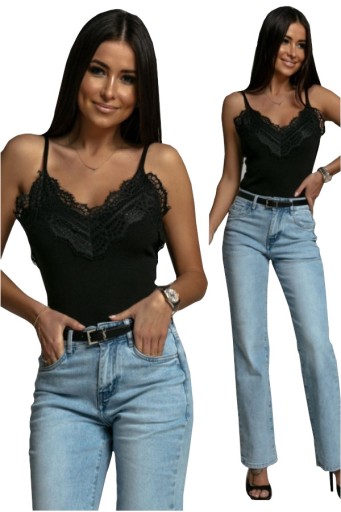 Śliczny stylowy top z koronką na ramiączkach. Stylowa i seksowna kreacja dla każdej kobiety. Bawełniane bardzo wygodne elastyczne, wykończone falbanką