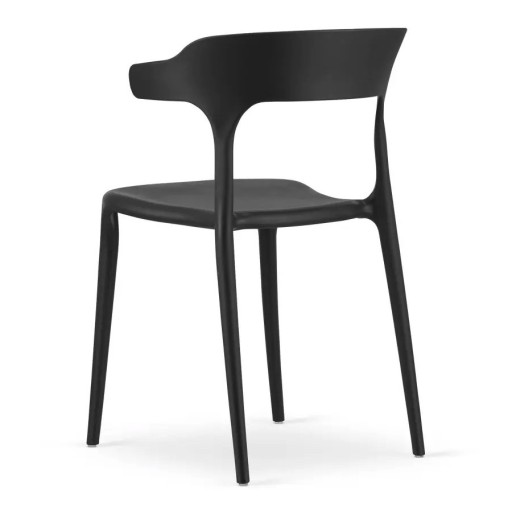 Stylowe i nowoczesne krzesło ażurowe typu bistro w kolorze czarnym. Jest wykonane z wysokiej jakości polipropylenu, co gwarantuje trwałość i łatwość w utrzymaniu czystości. To lekkie i praktyczne krzesło doskonale sprawdzi się zarówno w kuchni, jadalni, jak i w kawiarniach czy restauracjach.