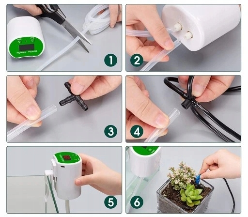 【Automatyczny system samopodlewania】-ten system nawadniania w pomieszczeniach jest idealnym rozwiązaniem do podlewania roślin w pomieszczeniach, gdy nie ma Cię na wakacjach, na wakacjach. Ustaw interwał czasowy (od 1 do 10 dni) i czas podlewania (od 1 do 90 sekund), po zaprogramowaniu ten automatyczny zestaw do nawadniania zajmie się podlewaniem roślin za Ciebie. Urządzenie do podlewania roślin wyposażone w filtr, zapobiega przedostawaniu się zanieczyszczeń do urządzenia i powodowaniu zatykania.