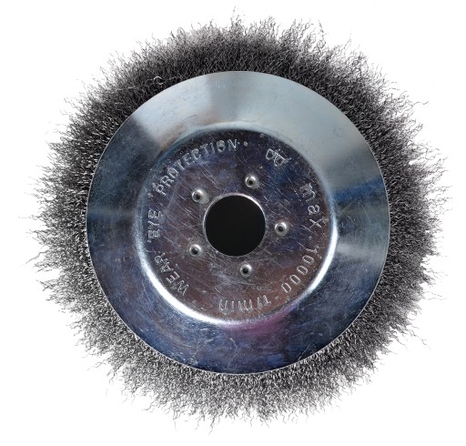 Tarcza szczotkowa z wysokiej jakości stali odpornej na obciążenia siły odśrodkowej oraz bardzo wysokie obroty dochodzące nawet do 10000 obr/min.