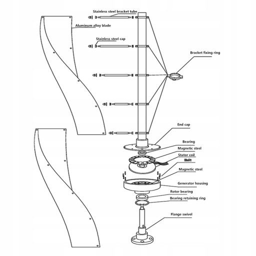 5. Zbudowany zgodnie z surowymi standardami kontroli jakości, konstrukcja generatora wiatrowego została ulepszona w celu uzyskania wysokiej wydajności.