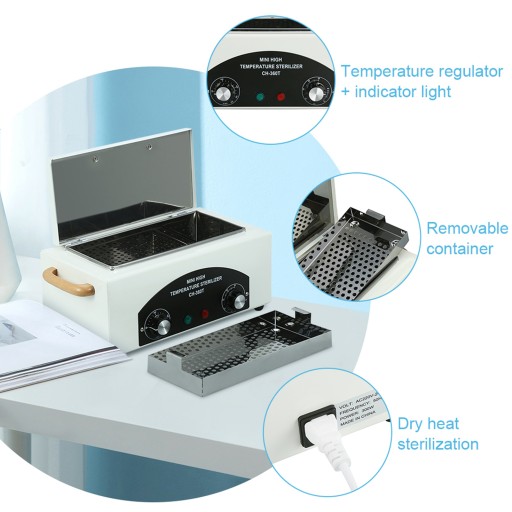 Wysokotemperaturowy sterylizator do manicure przeznaczony jest do dezynfekcji narzędzi i zabiegów do paznokci, a także do czyszczenia. Wewnętrzny blok termiczny wykonany jest ze stali nierdzewnej i posiada wyjmowany pojemnik do przechowywania i sterylizacji narzędzi. Sterylizator na sucho zabija bakterie bez wilgoci i nie tępi ostrego instrumentu. Takie wspaniałe towary, po prostu przynieś je do domu!