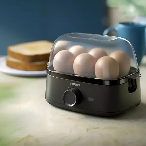 Jajka ugotowane tak jak lubisz. Na miękko, półtwardo, twardo, w koszulce — zawsze idealne. Urządzenie pozwala przygotowywać jajka dla całej rodziny, a jego niewielka i praktyczna konstrukcja ułatwia czyszczenie i zajmuje niewiele miejsca.