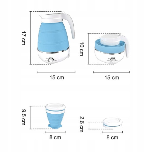 - Sk?adany silikonowy czajnik mo?e szybko zagotowa? wod? w oko?o pi?? minut.