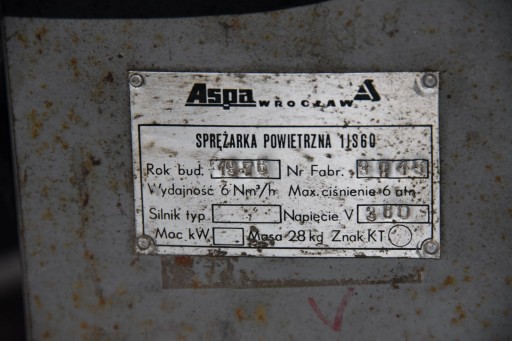 Sprężarka na chodzie. Od dłuższego czasu nie używana. Wymaga przejrzenia, wymiany oleju, manometru i czyszczenia filtra. Oryginalne malowanie. Dane na zdjęciach. Możliwa wysyłka po ustaleniu telefonicznym.