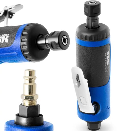 Szlifierka pneumatyczna marki MSW sprawdzi się do szlifowania, oddzielania, polerowania, frezowania, okrawania a także przerabiania czy szorstkowania. Urządzenie pracuje z prędkością 22000 obr./min. Napędzane jest powietrzem o przepływie 113 l/min o maks. ciśnieniu 6,3 bar. Prędkość obrotową można ustawić w zależności od rodzaju pracy. Szlifierka posiada tolerancję koncentryczności równą 0,15 mm. Rękojeść ma ergonomiczny kształt a lekka konstrukcja umożliwia wygodna pracę nawet przez dłuższy czas. Sprężone powietrze odprowadzane jest bocznie o 360° za pomocą obrotowego wylotu. Wysokiej jakości skrzynia biegów oraz łożyska zapewniają długie użytkowanie przy niskich wymaganiach konserwacyjnych.