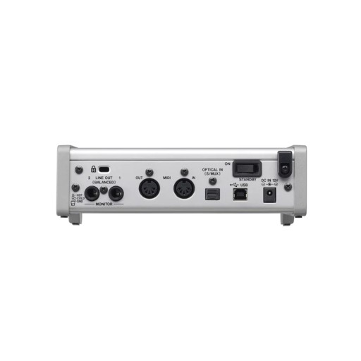 Z łatwością można dodawać kolejne kanały wejściowe, aby przygotować się na przyszły rozwój, używając zewnętrznych przedwzmacniaczy mikrofonowych z wejściami optycznymi S/MUX do nagrywania bębnów, gitar, klawiatur, wokali itd.. Każdy optyczny port S/MUX może obsługiwać do 8 kanałów wejściowych z urządzenia kompatybilnego z ADAT lub S/MUX.