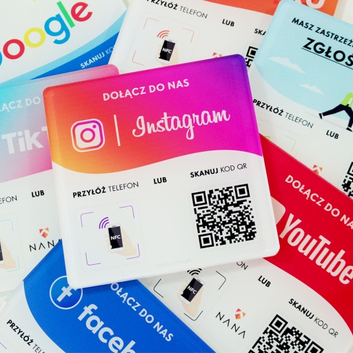 W ofercie wiele wzorów tabliczek z technologią NFC kierujących do popularnych portali