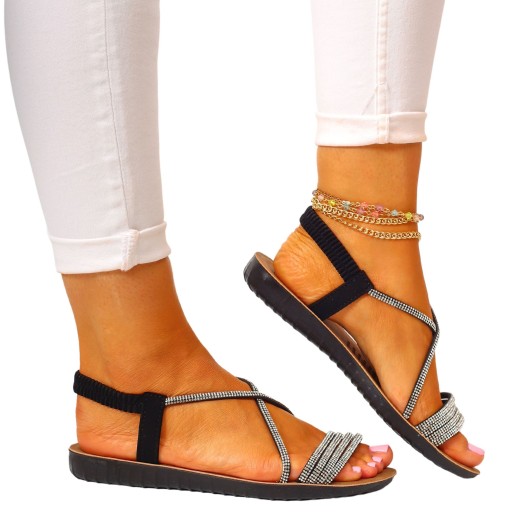 Damskie sandałki w kolorze czarnym, na płaskim spodzie. Idealnie sprawdzą się jako obuwie na co dzień w letnie, upalne dni. Komfortowa, profilowana wkładka sprawia, że idealnie nadają się do codziennego użytkowania. Prosty fason dopasuje się również do eleganckich stylizacji, dodadzą uroku każdej stylizacji. Elastyczny pasek przy pięcie ułatwia zakładanie obuwia i ułatwia jego dopasowanie do stopy.